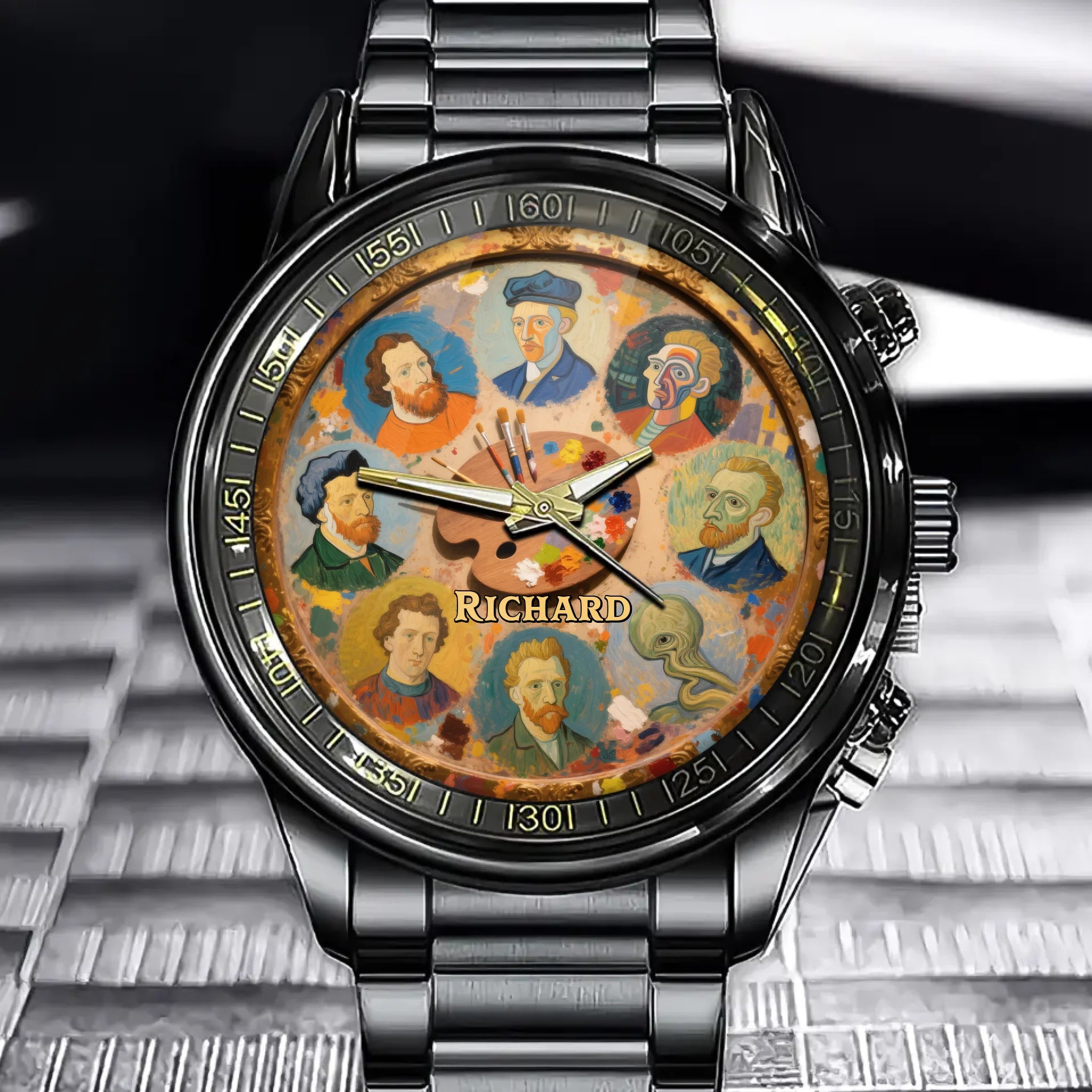 Customizable Painter's Palette Watch - A Creative Canvas with Your Name