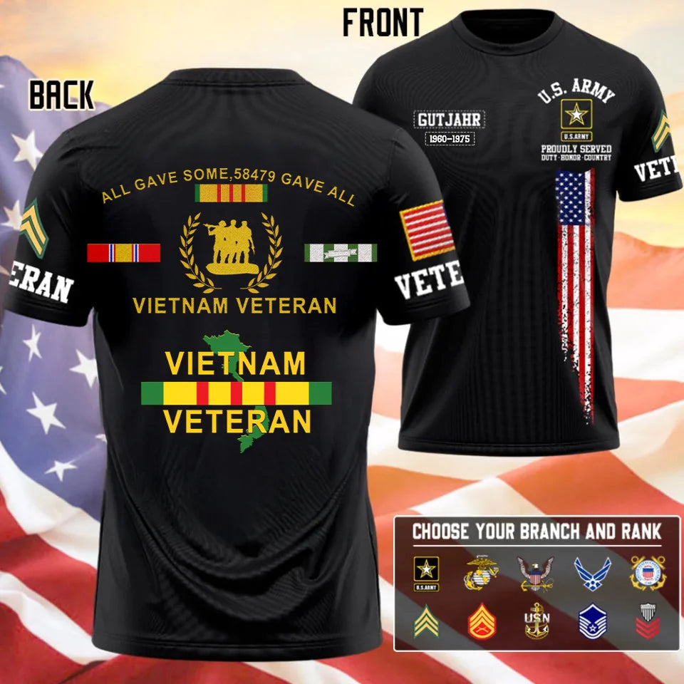 Personalized All Gave Some 58479 Gave All Vietnam Veteran Shirt with Custom Military Branch, Rank & Name