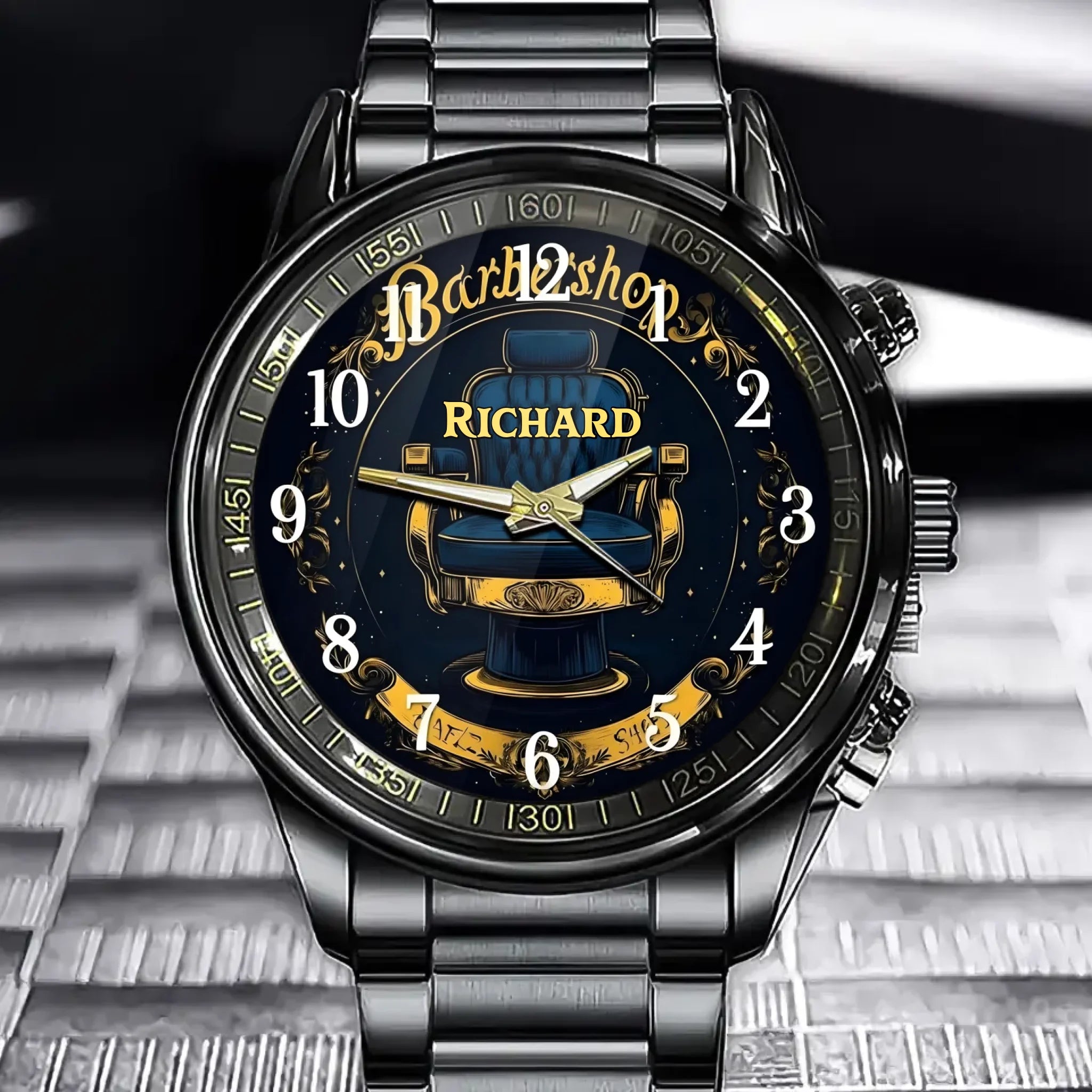 Personalized Barbershop Style Watch - Vintage Chair Design And Custom Name Personalization