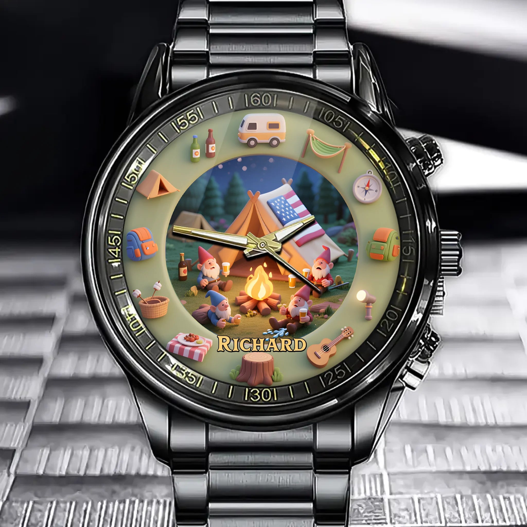 Personalized Camping Gnomes Watch - Add Your Name to This Charming Adventure Scene