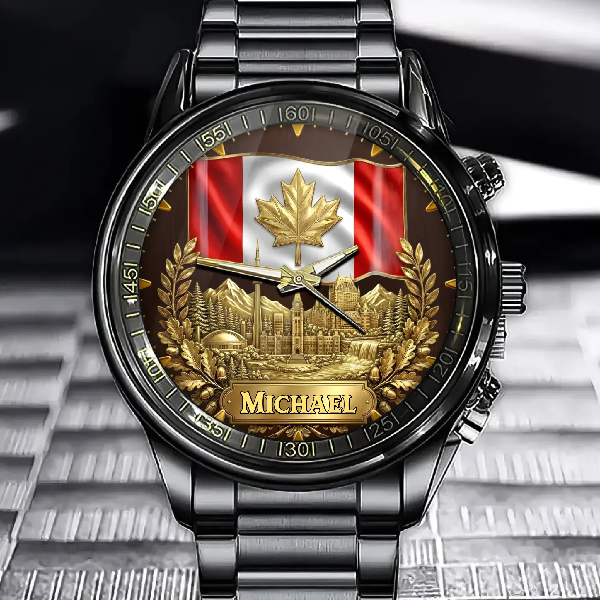 Personalized Canadian Heritage Watch – Custom Name Edition with Iconic Landmarks