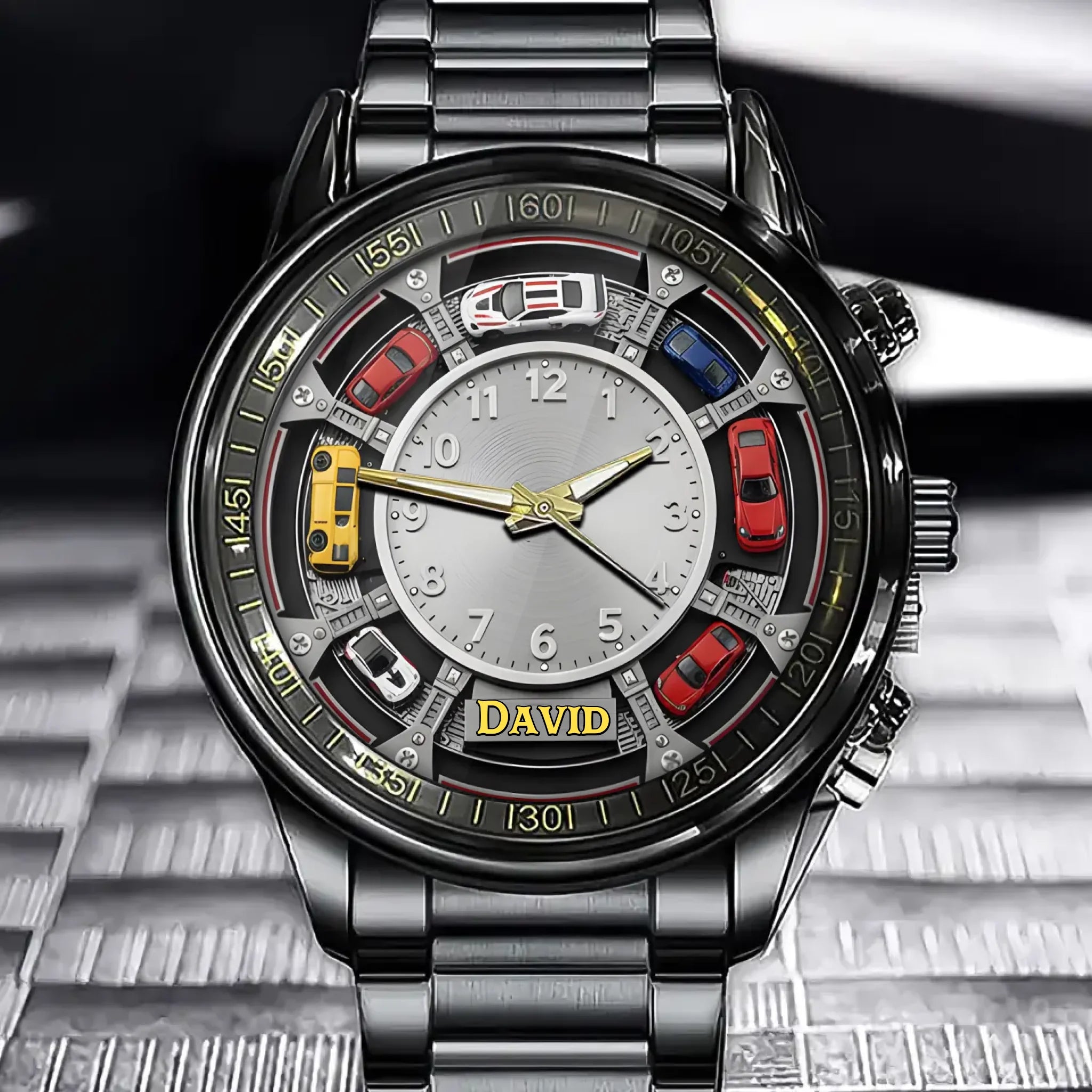 Personalized Car Lover Watch - Parking Garage & Auto Design with Custom Name