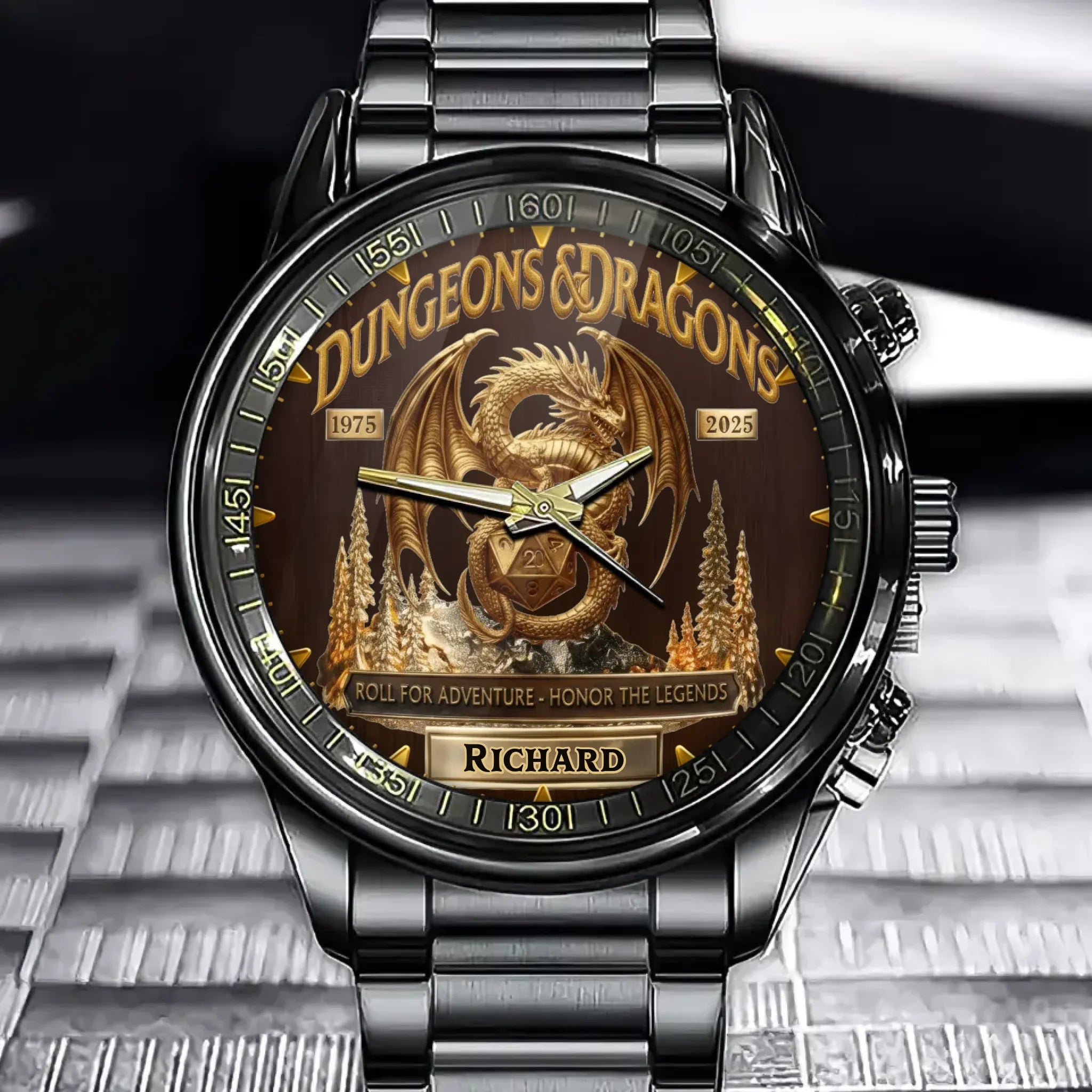 Personalized D&D 50th Anniversary Dragon Watch – Roll for Adventure Edition