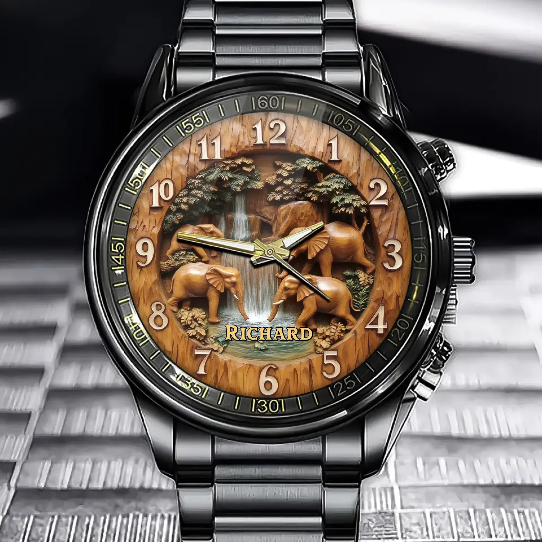 Personalized Elephant Waterfall Watch - A Timeless Design with Your Name