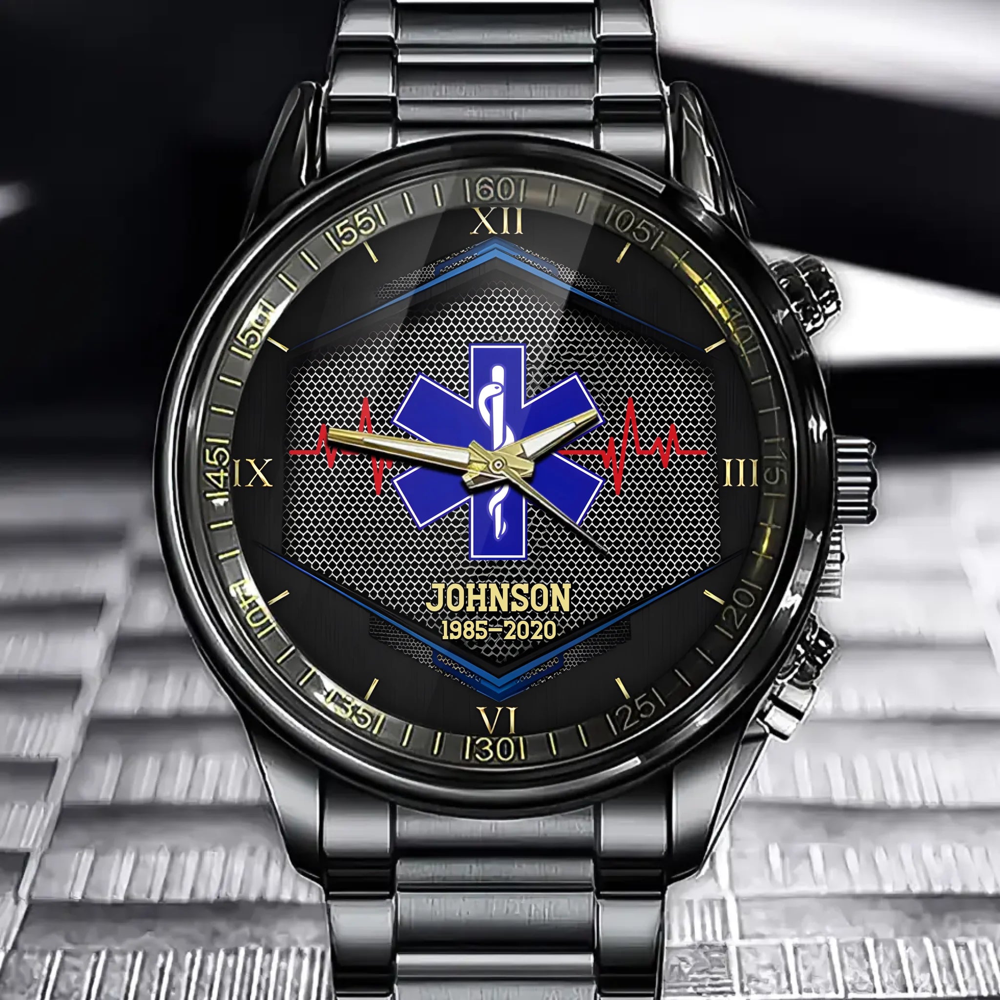 Personalized EMS /EMT /Paramedic /Firefighter /Police Custom LOGO, Title & Time Watch