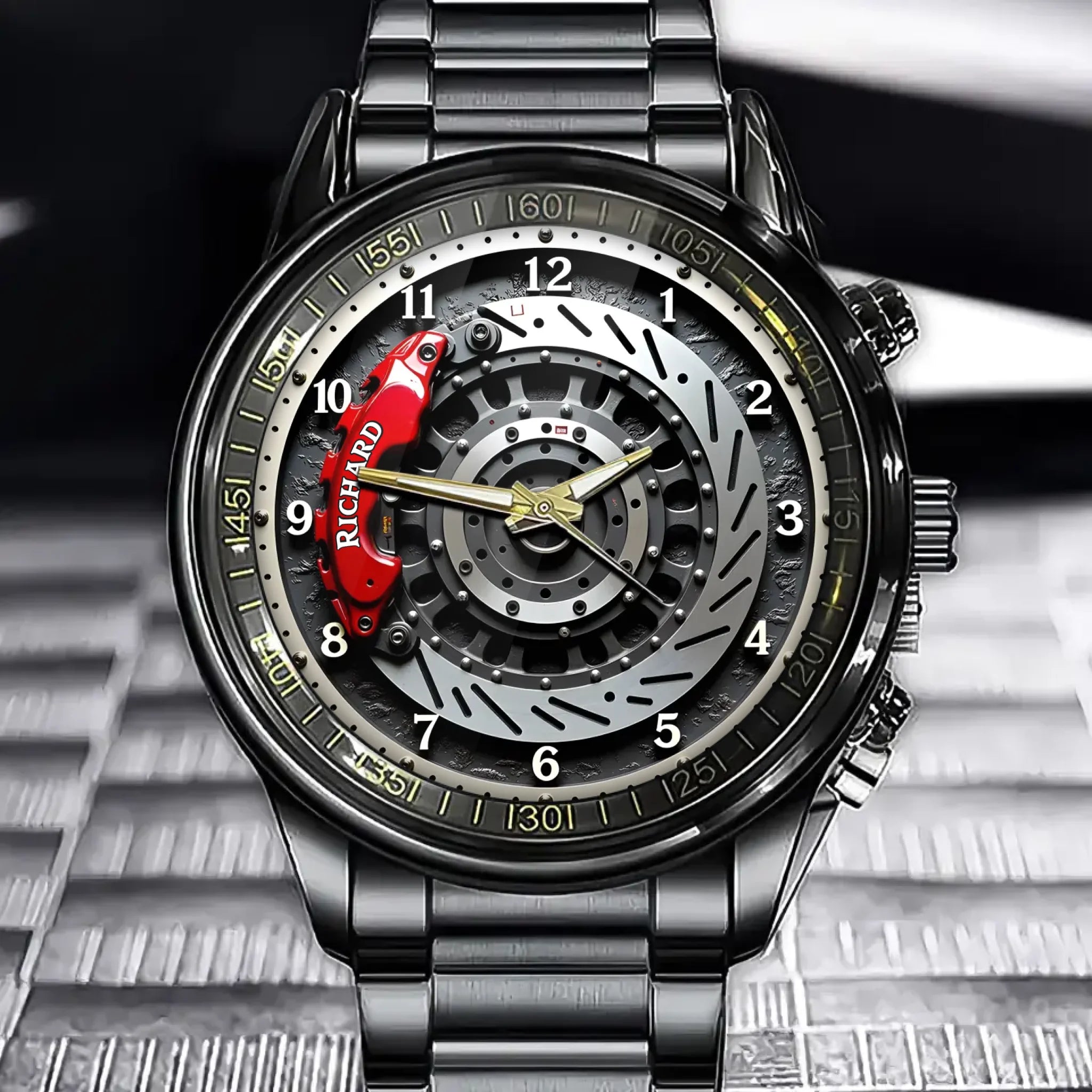 Personalized Engraved Brake Disc Watch - Custom Name Design