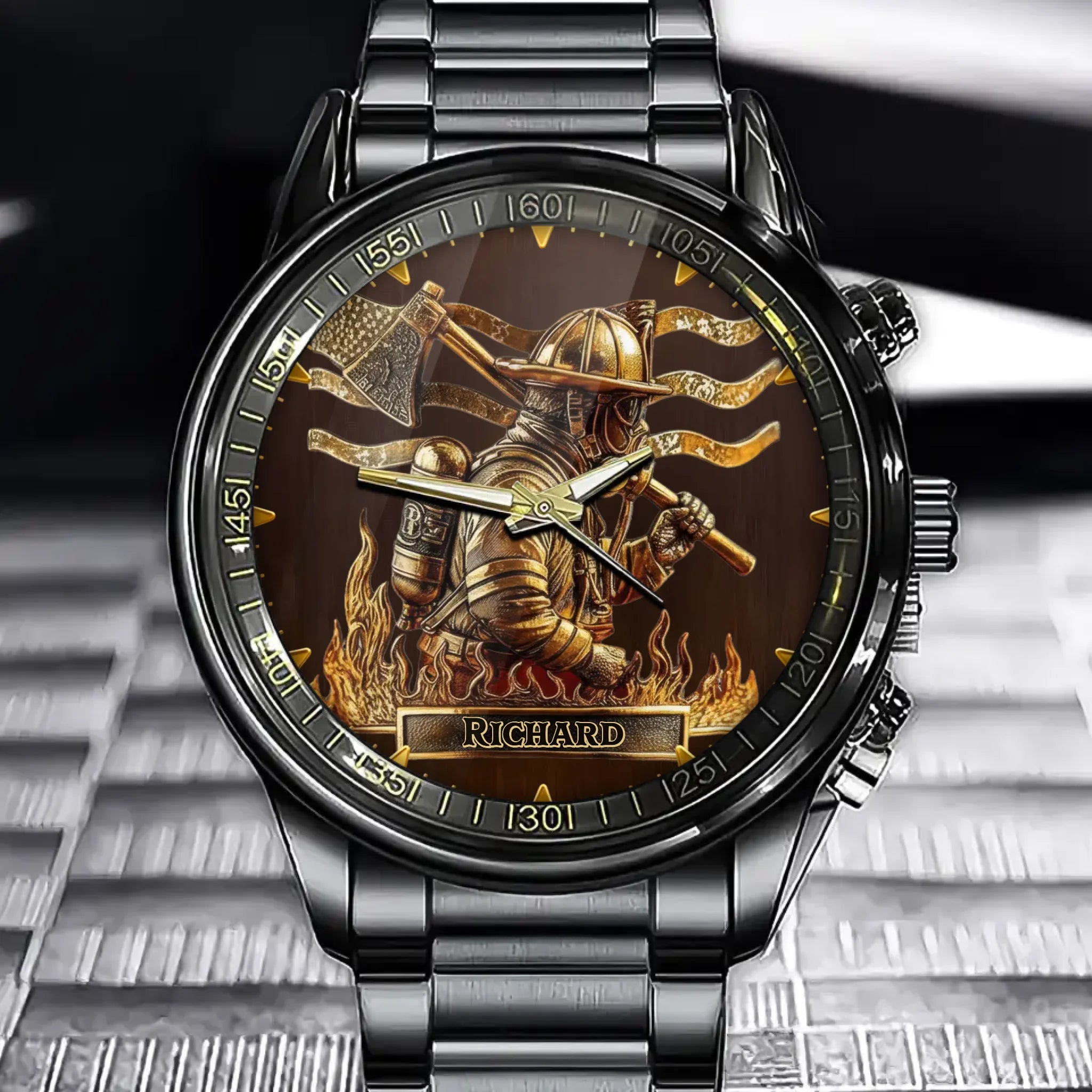 Personalized Firefighter Hero Watch – Custom Name & Gold Relief Artwork