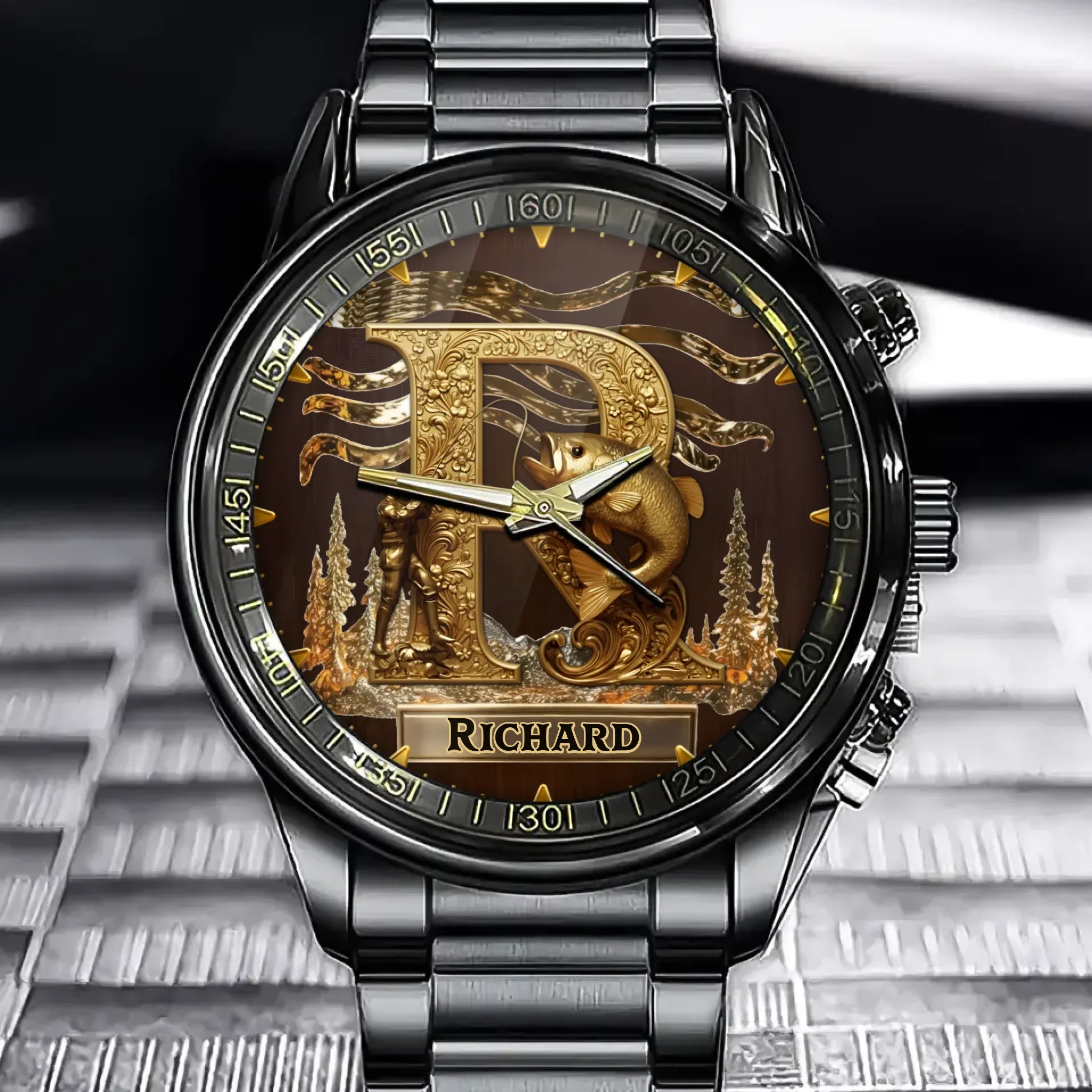 Personalized Fishing Watch - Custom Alphabet Initial Option, Timepiece For Fishing Lovers For Anyone
