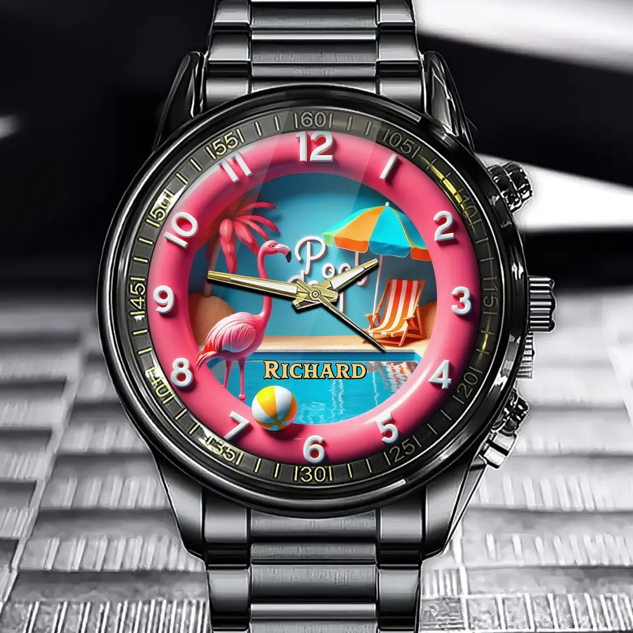 Personalized Flamingo Pool Watch - Customize with Your Name