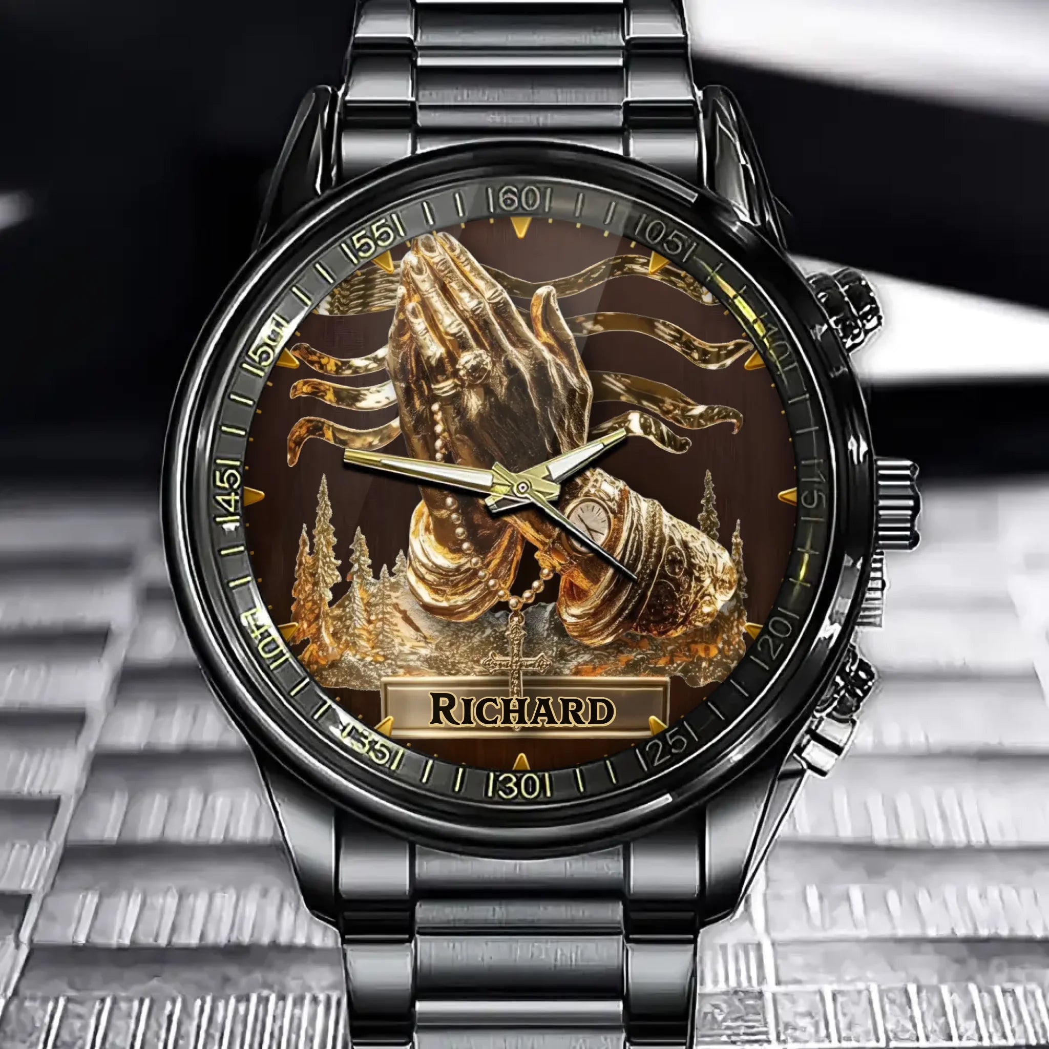 Personalized Golden Prayer Hands Watch – Spiritual & Elegant Design