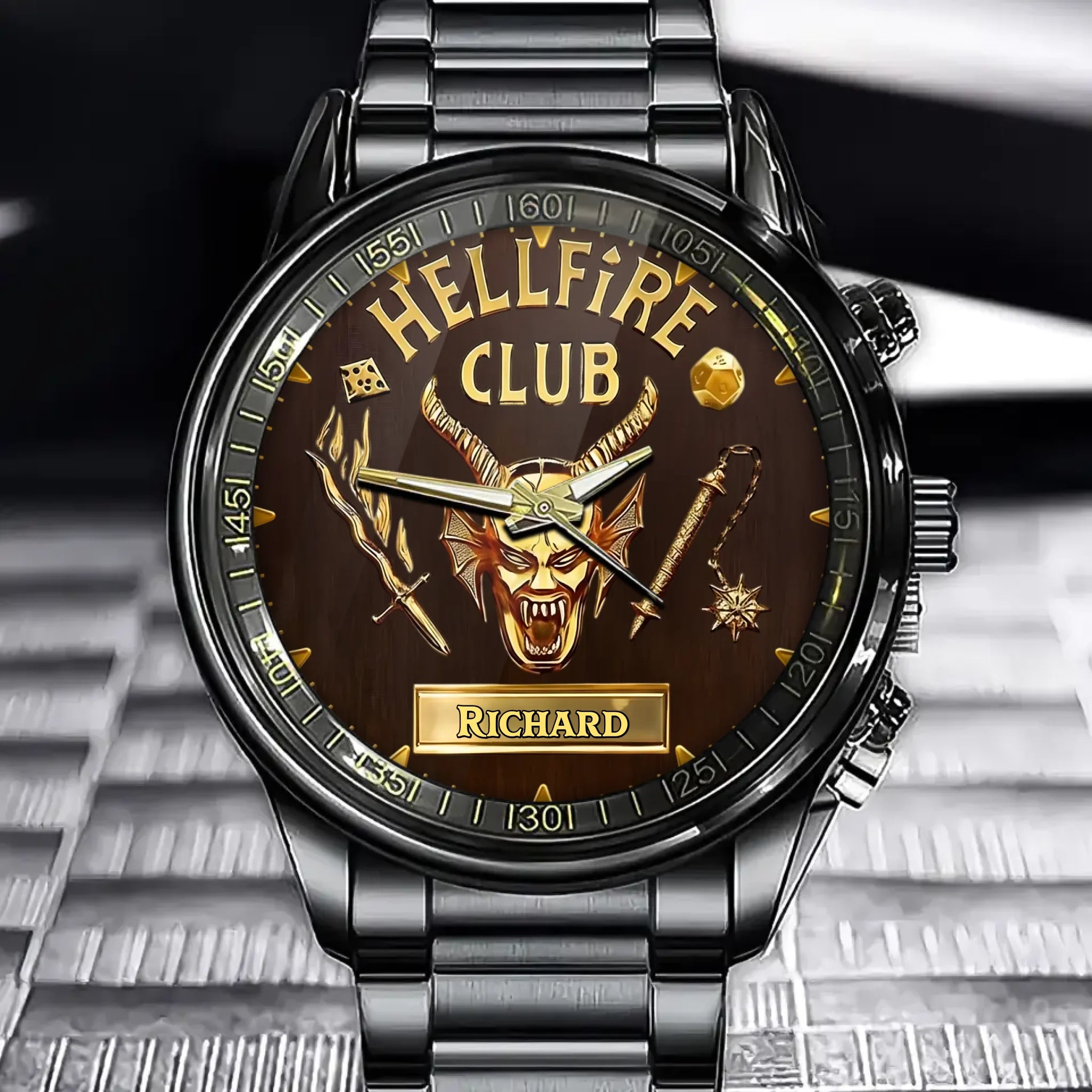 Personalized Hellfire Club Demon Watch - Dice, Swords & Star Accented Dial And Custom Name