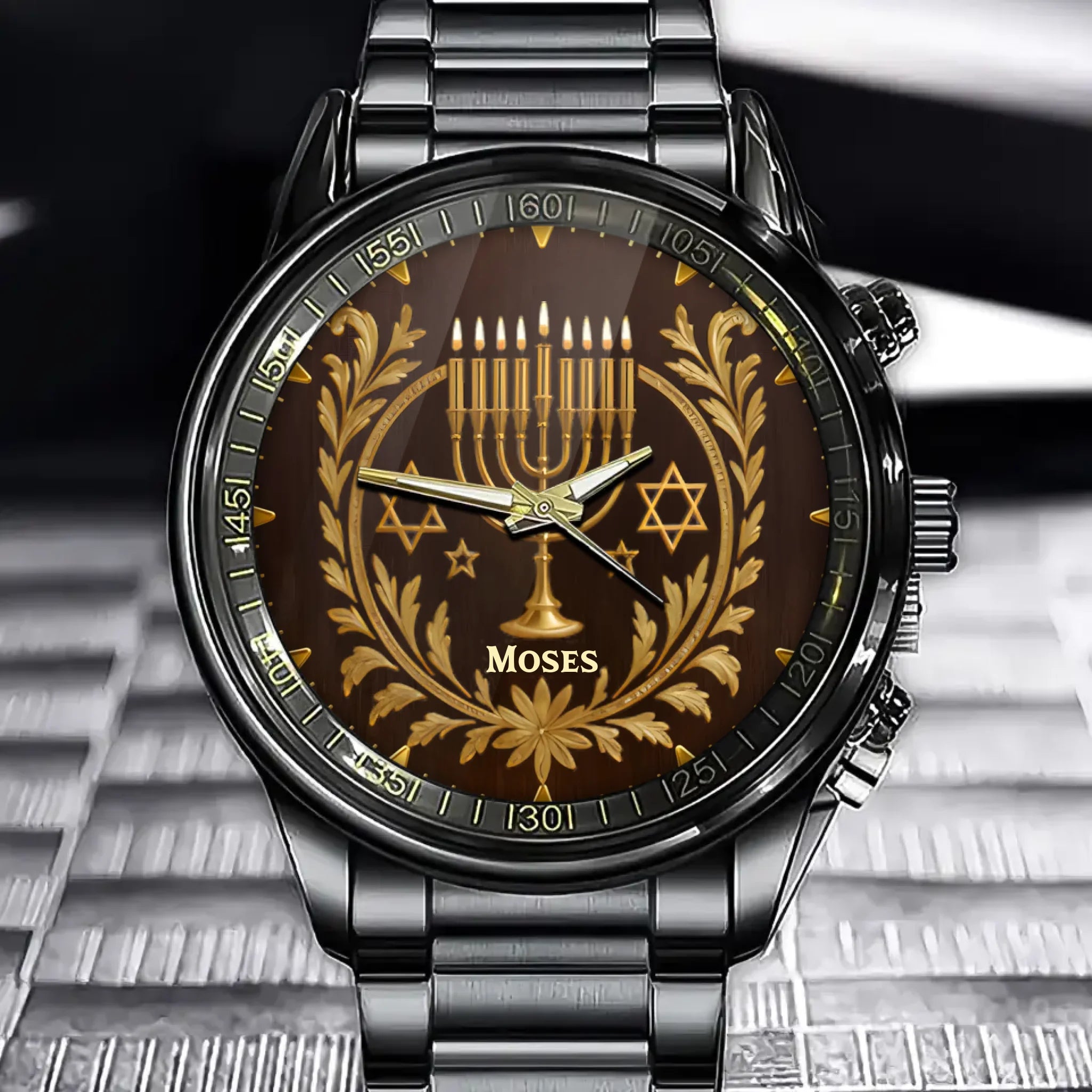 Personalized Jewish Watch with Menorah Design – Perfect Hanukkah Gift