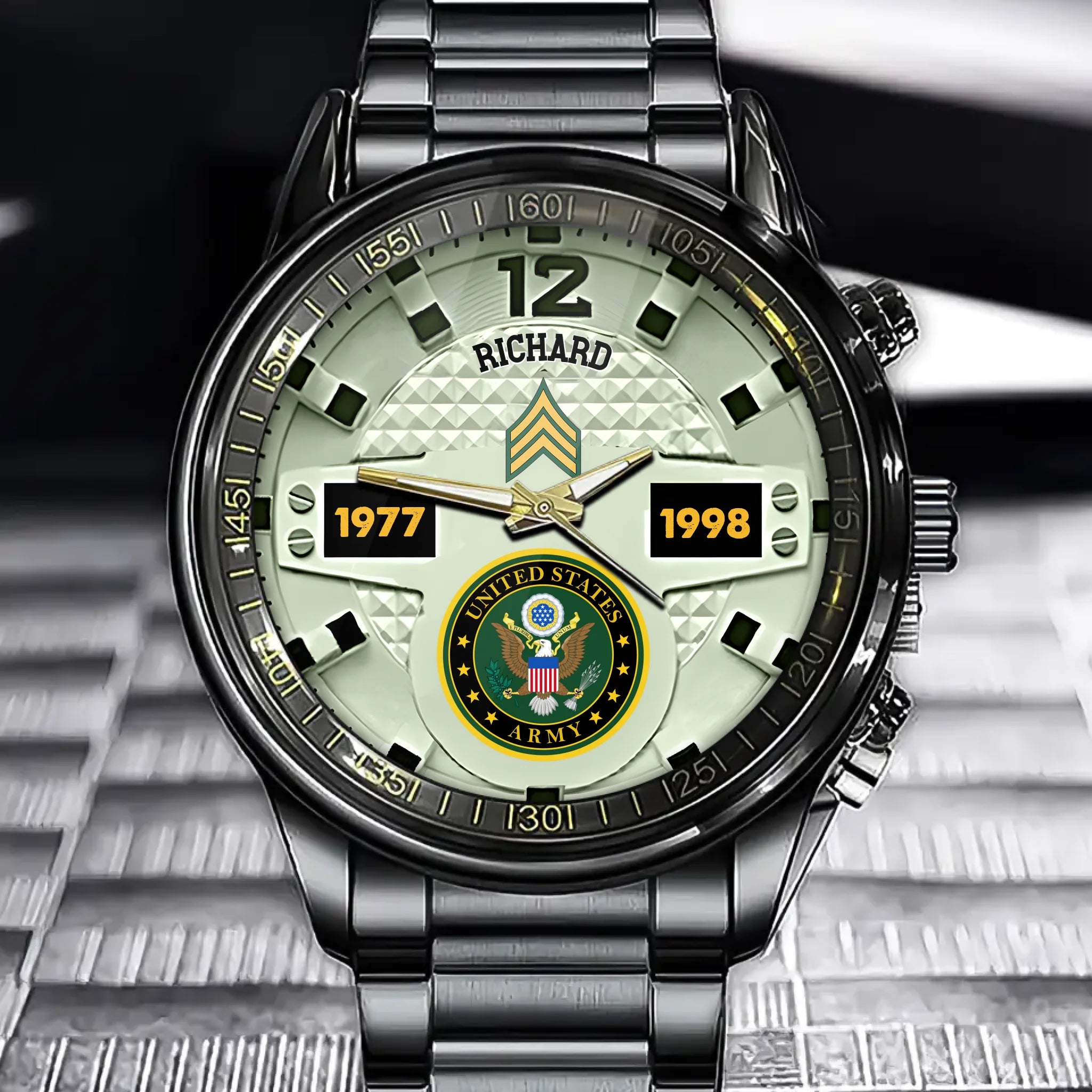 Personalized Military Service Watch - Custom Your Rank, Branch, Name, and Years of Service