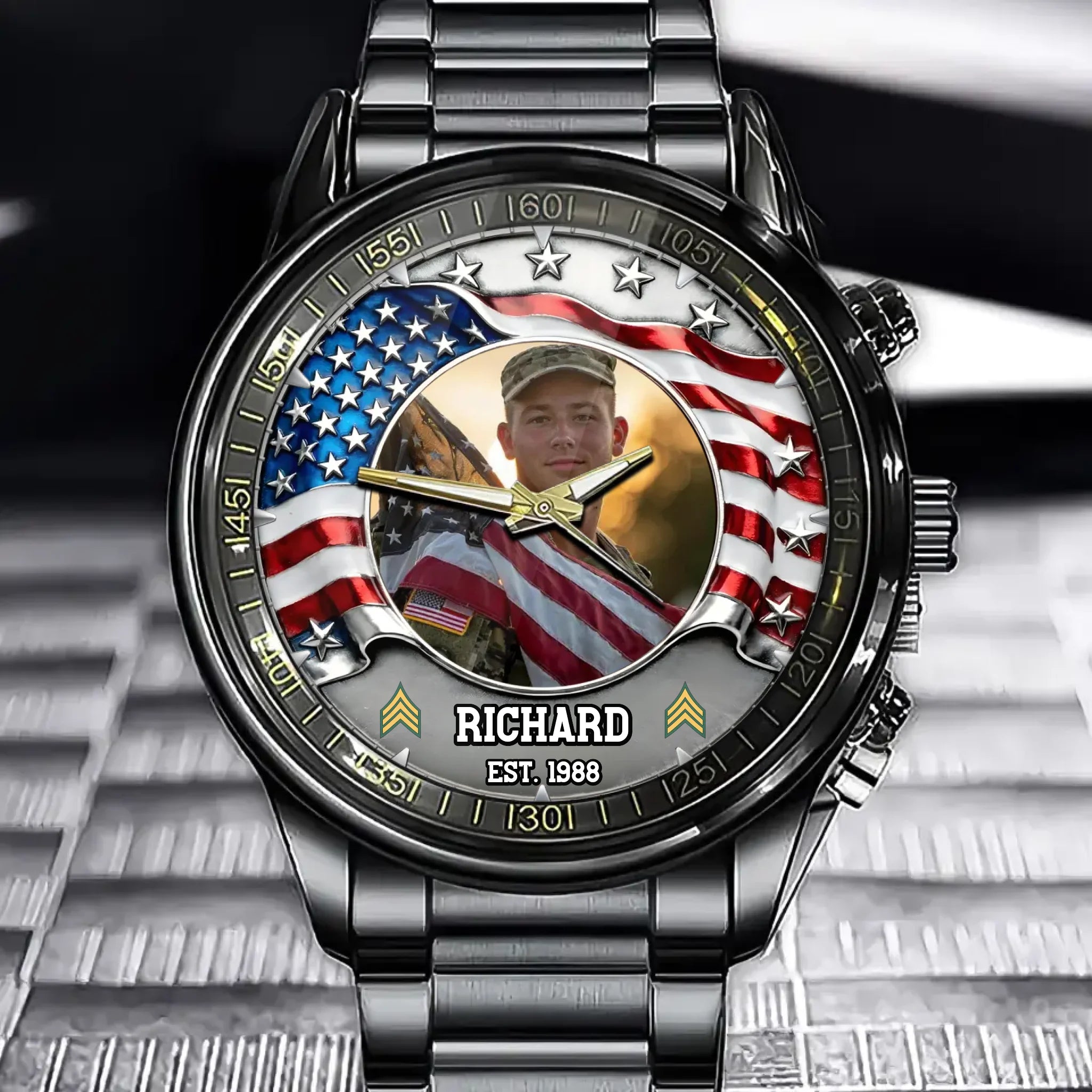 Personalized Military & Veteran Watch - Custom Photo Rank and Name