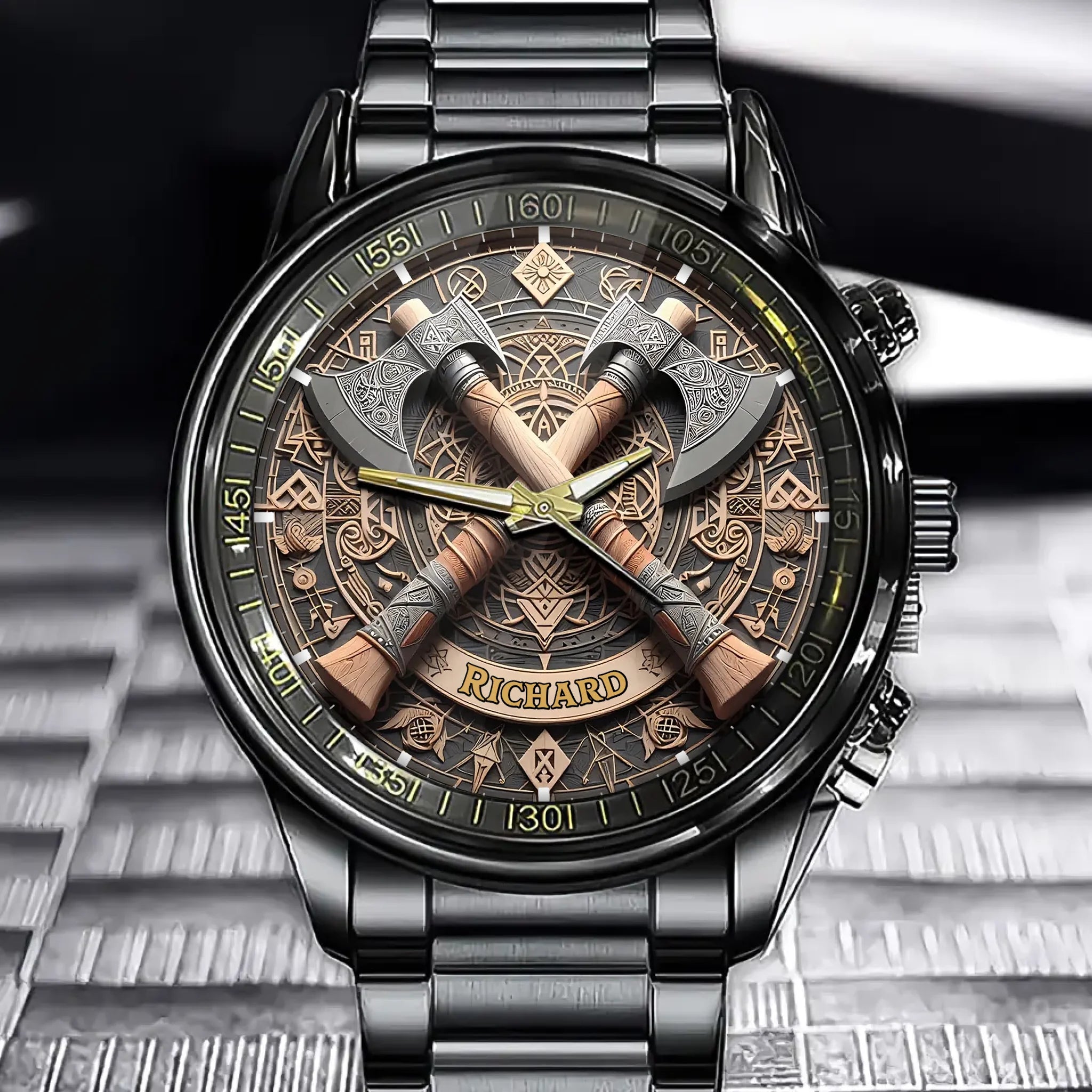 Personalized Nordic Viking Battle Axe Watch - Add Your Name for a Legendary Touch