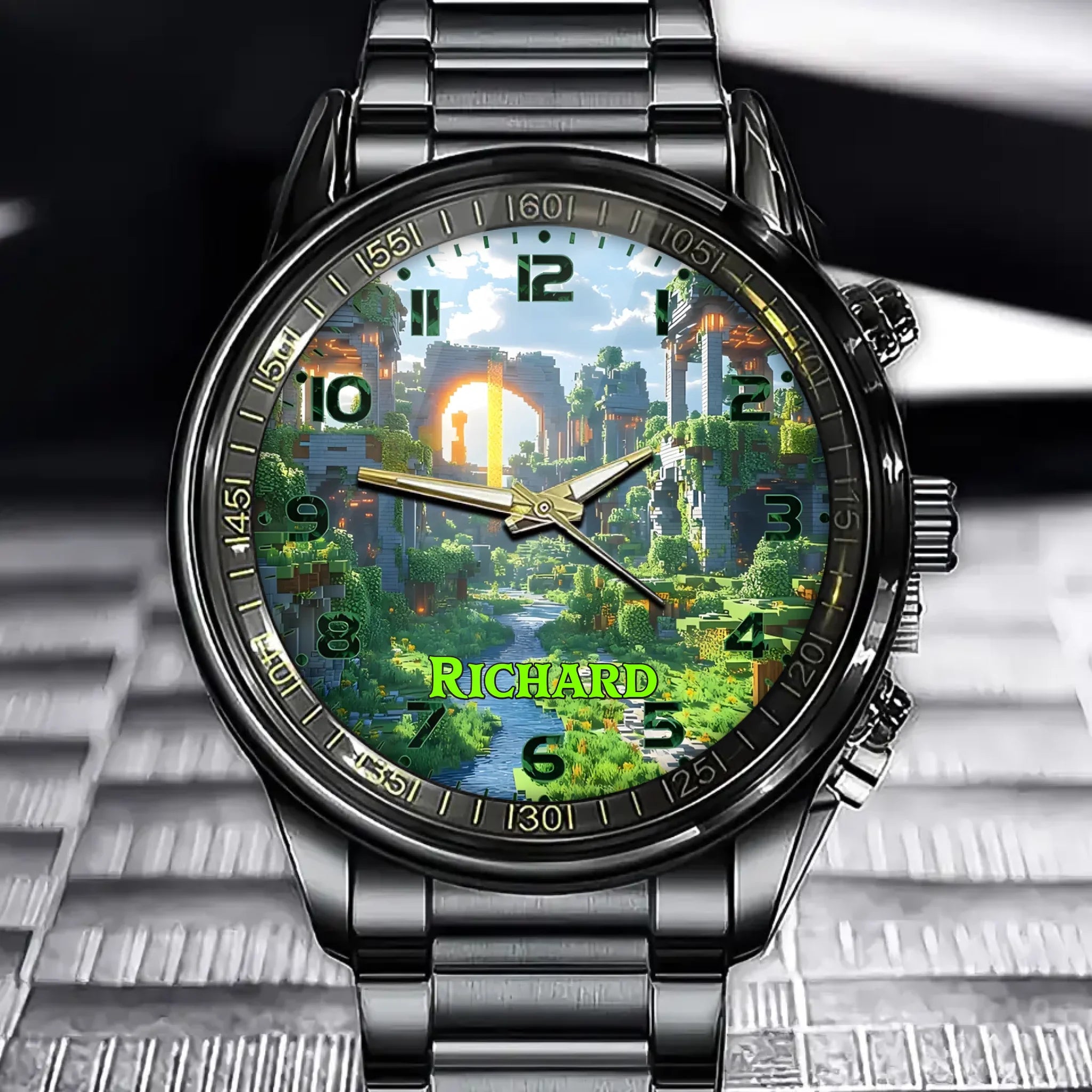 Personalized Pixel World Watch - Custom Your Name Step into a Blocky Adventure