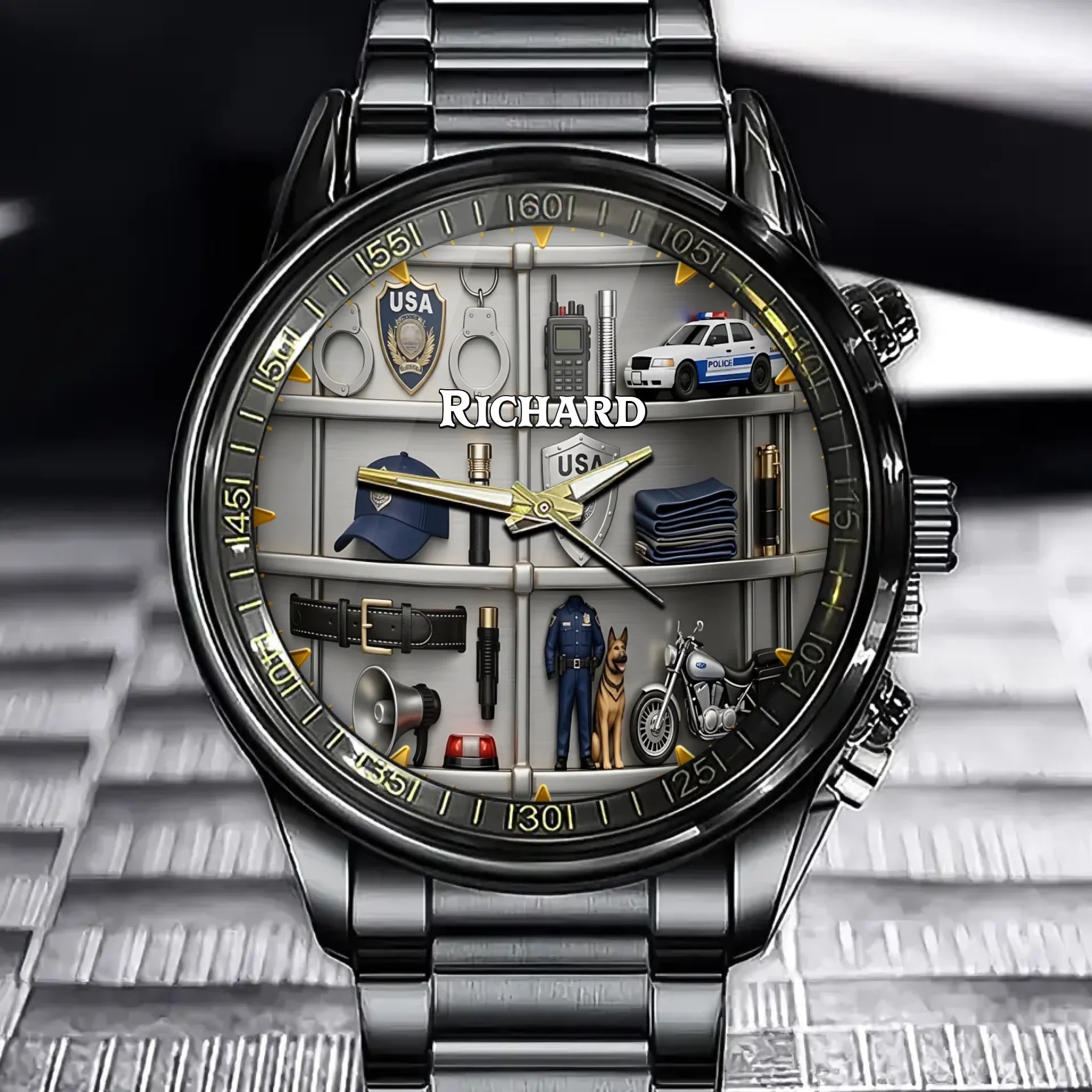 Personalized Police Gear Watch - USA Law Enforcement Theme with Custom Name