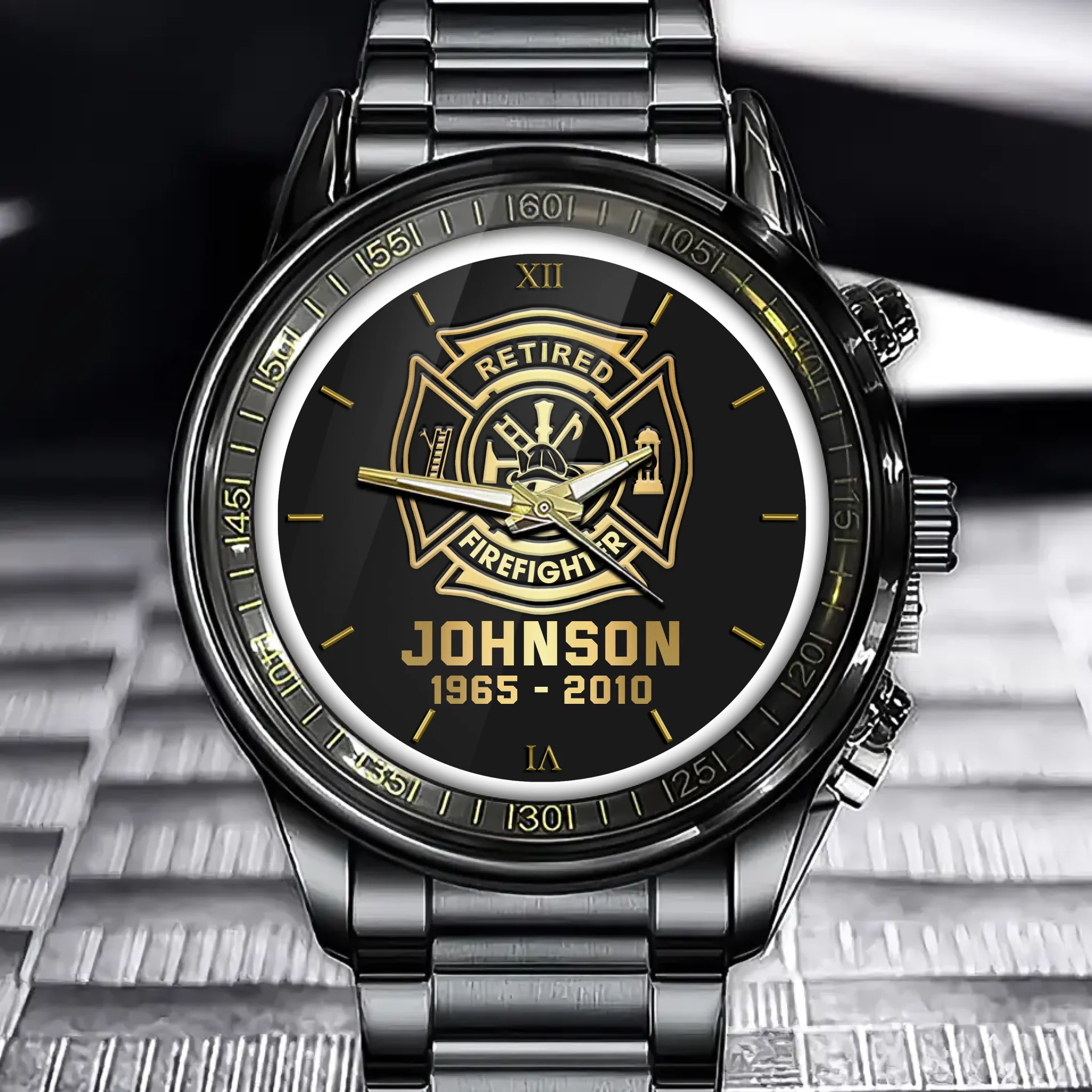 Personalized Retired Firefighter Custom Name & Served Time Watch