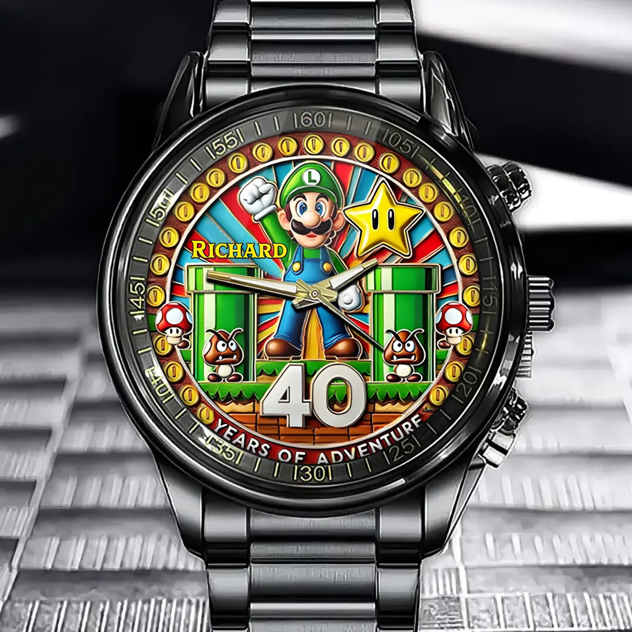 Personalized Retro Adventure Game Watch - Nostalgic Classic Game Elements Design with Custom Name Option