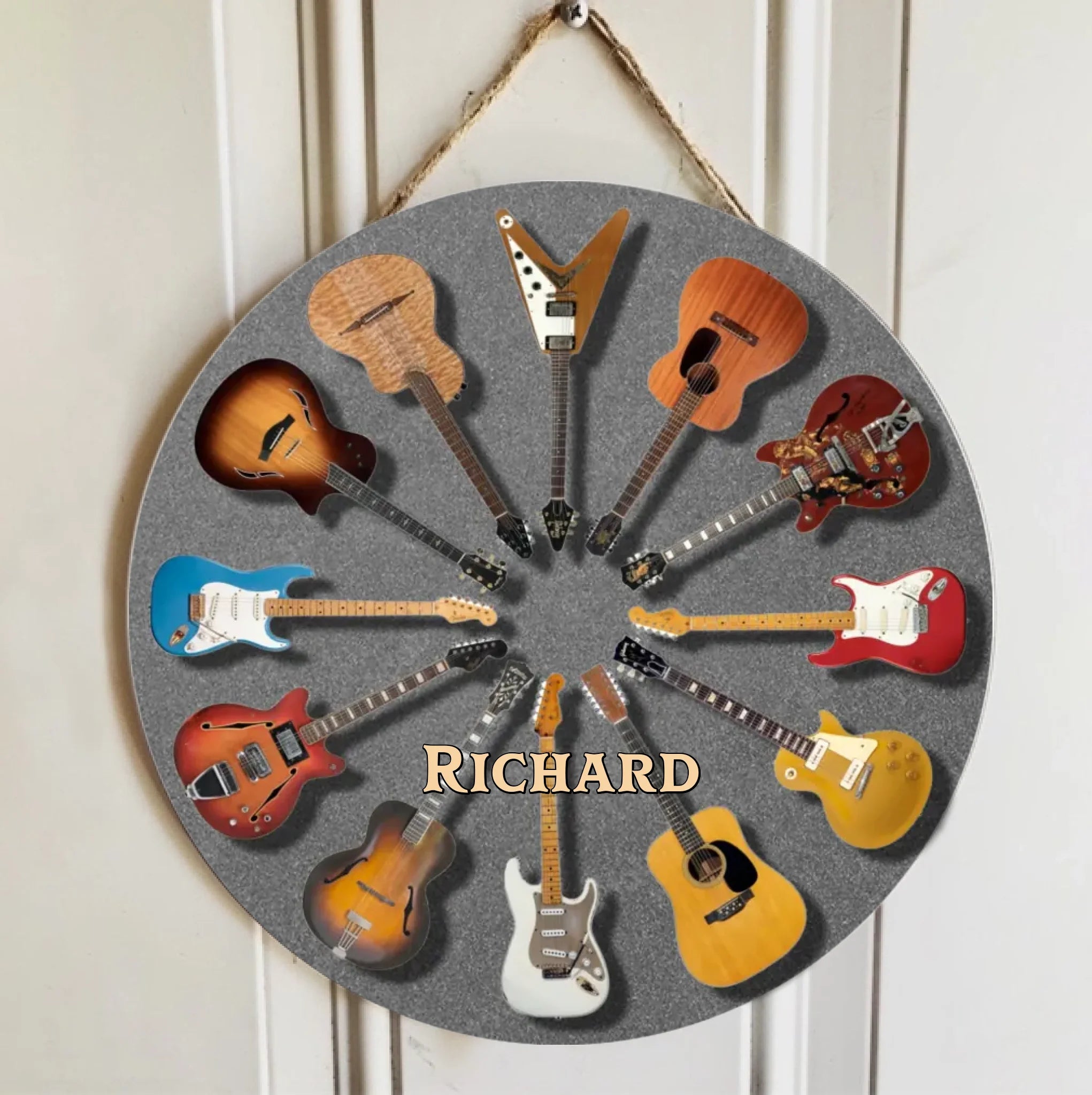Personalized Rock Around the Clock Guitar Door Sign for Music Lovers