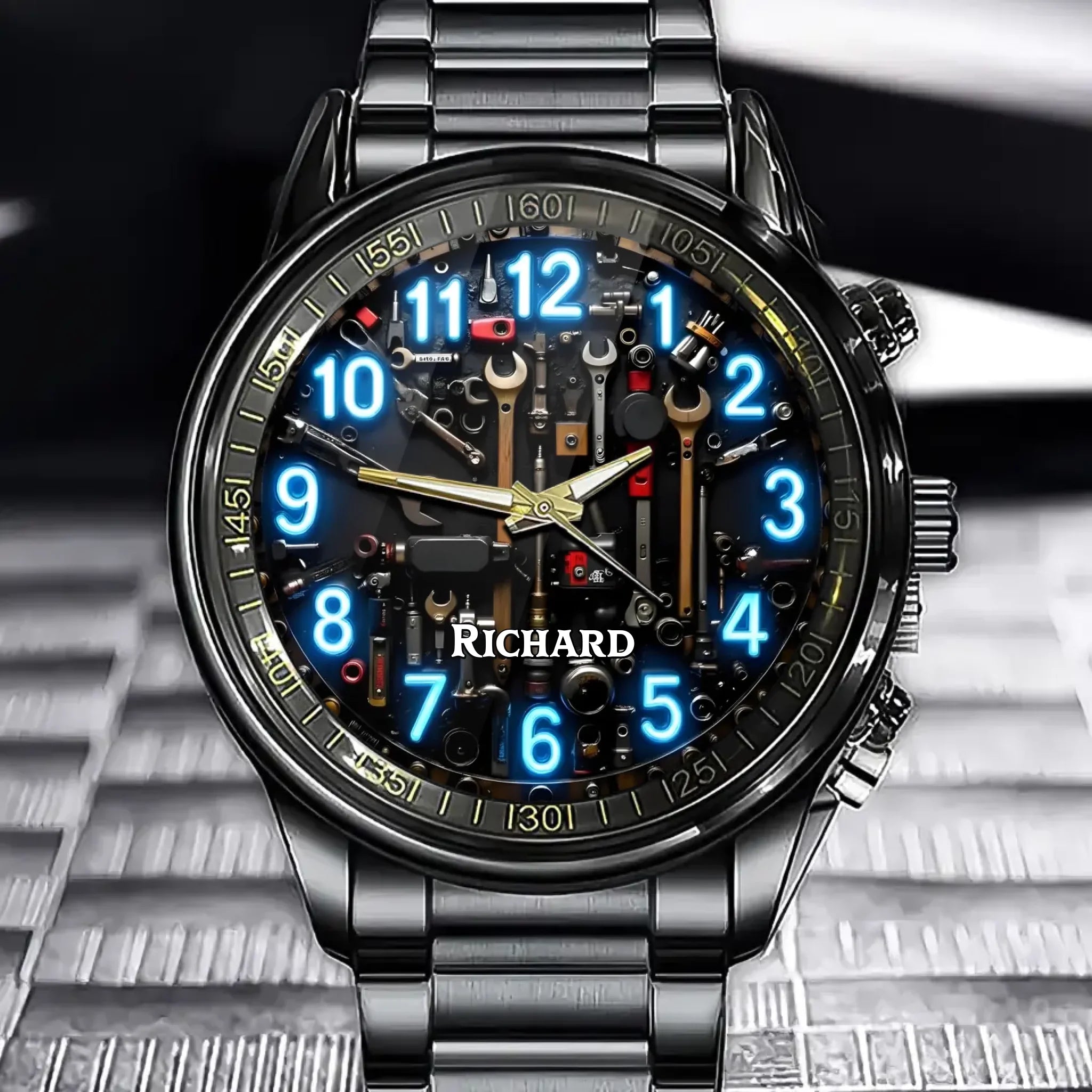 Personalized Tool Workshop Watch - Station & Glowing Number Theme with Custom Name