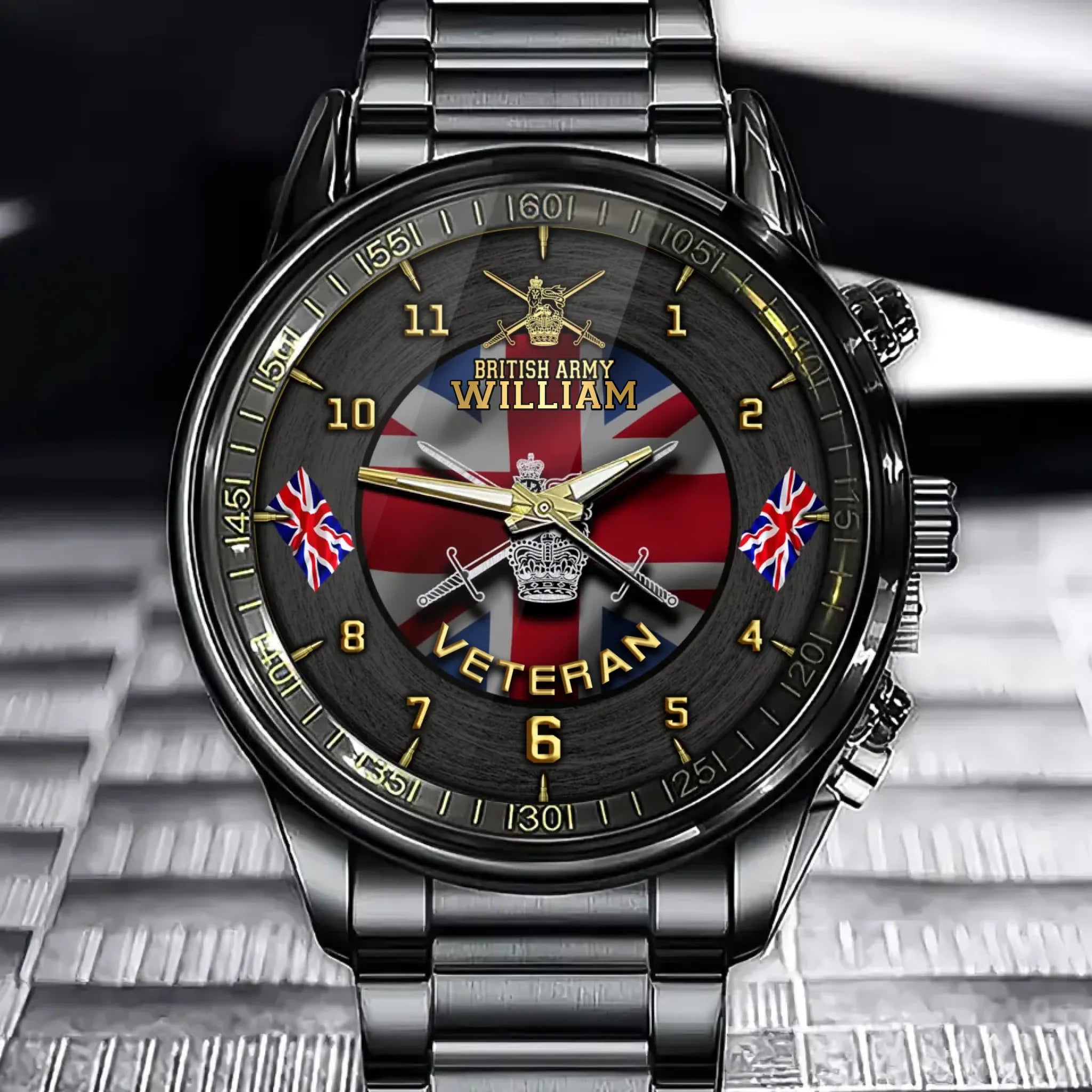 Personalized UK Army, Air Force, Navy Logo UK Veteran Custom Name Watch