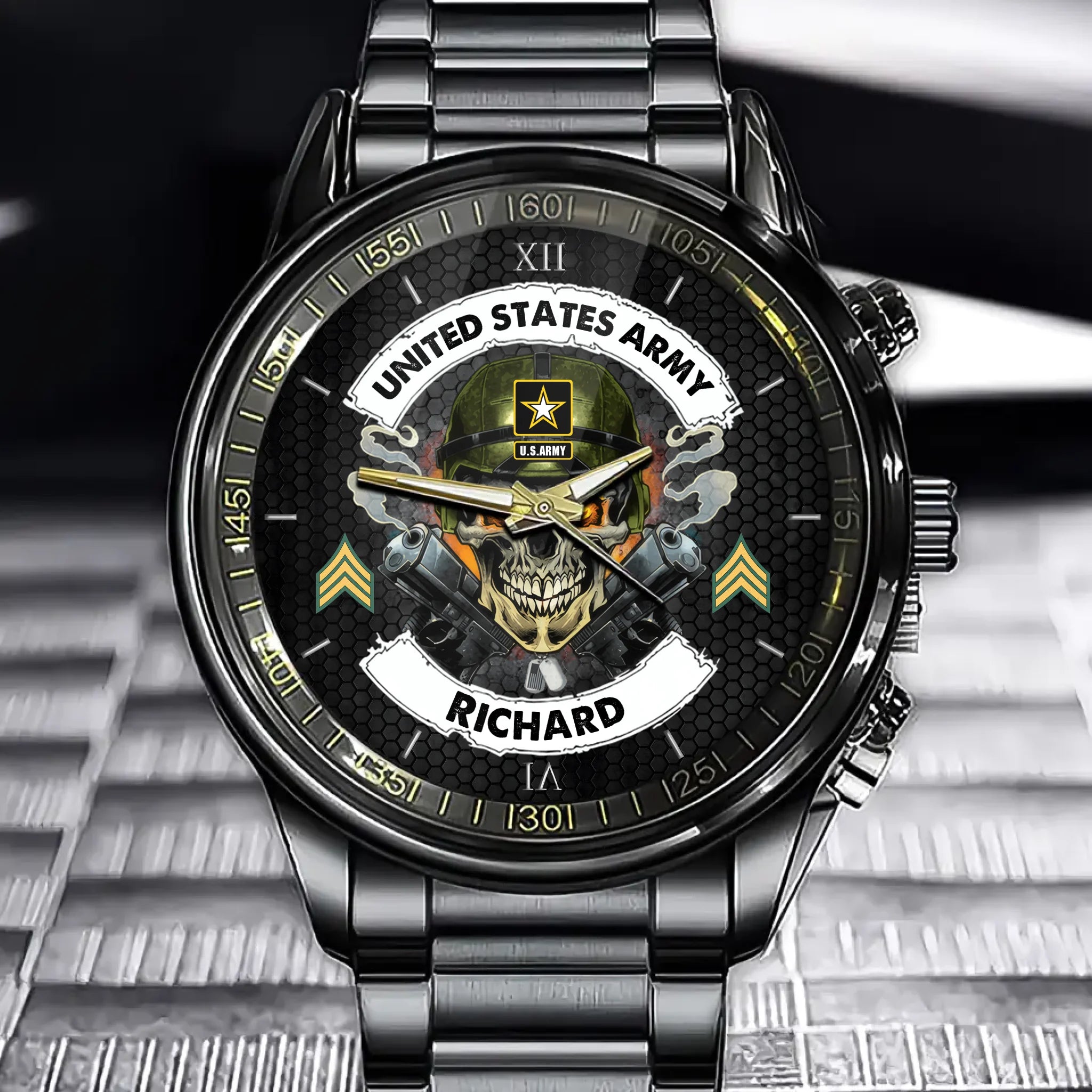 Custom Veteran Skull Watch - Personalized Branch, Rank, and Name