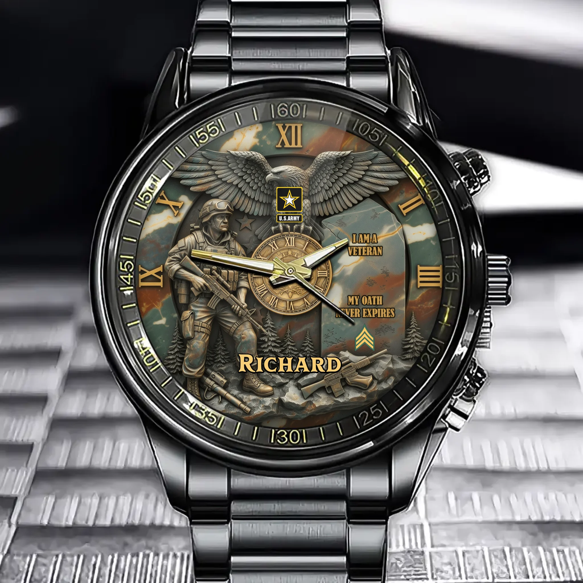 Personalized Veteran’s Legacy Watch – Custom Name, Branch & Rank