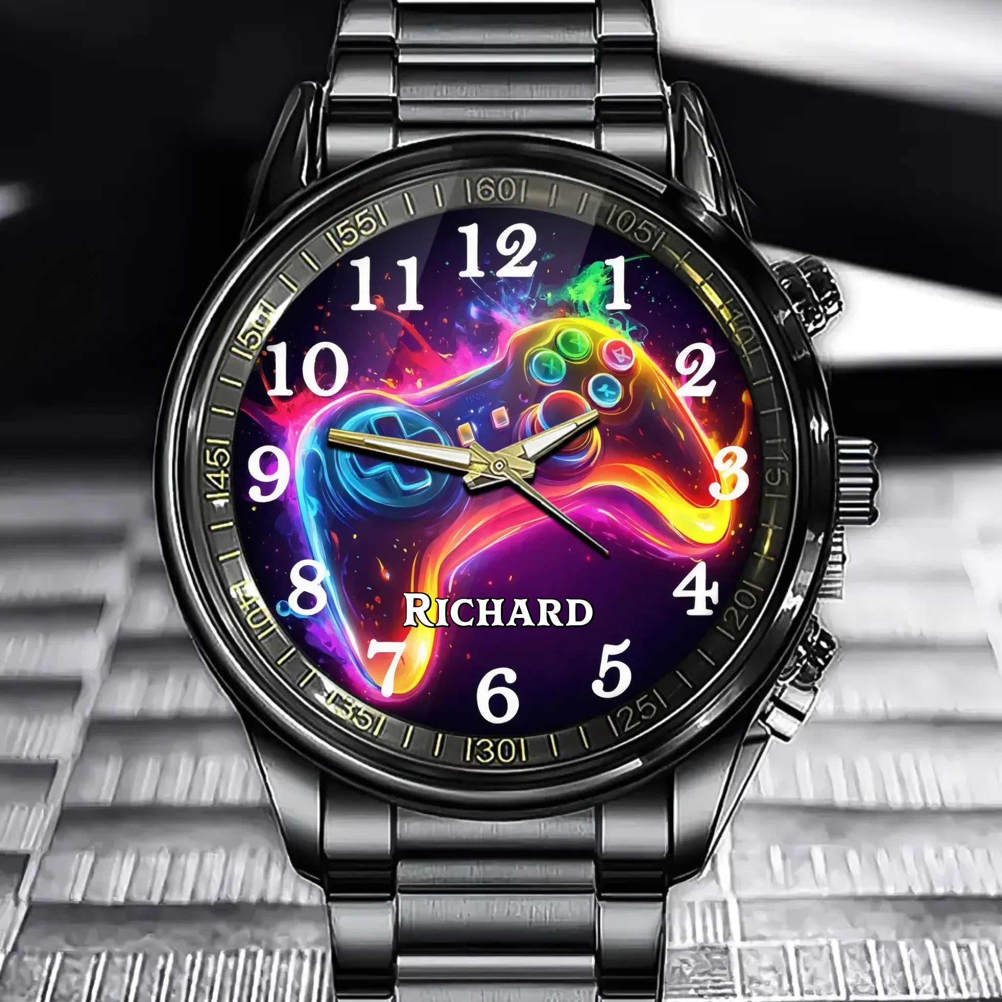 Personalized Vibrant Gamer Watch - Customize This Neon Watch Face with Your Name