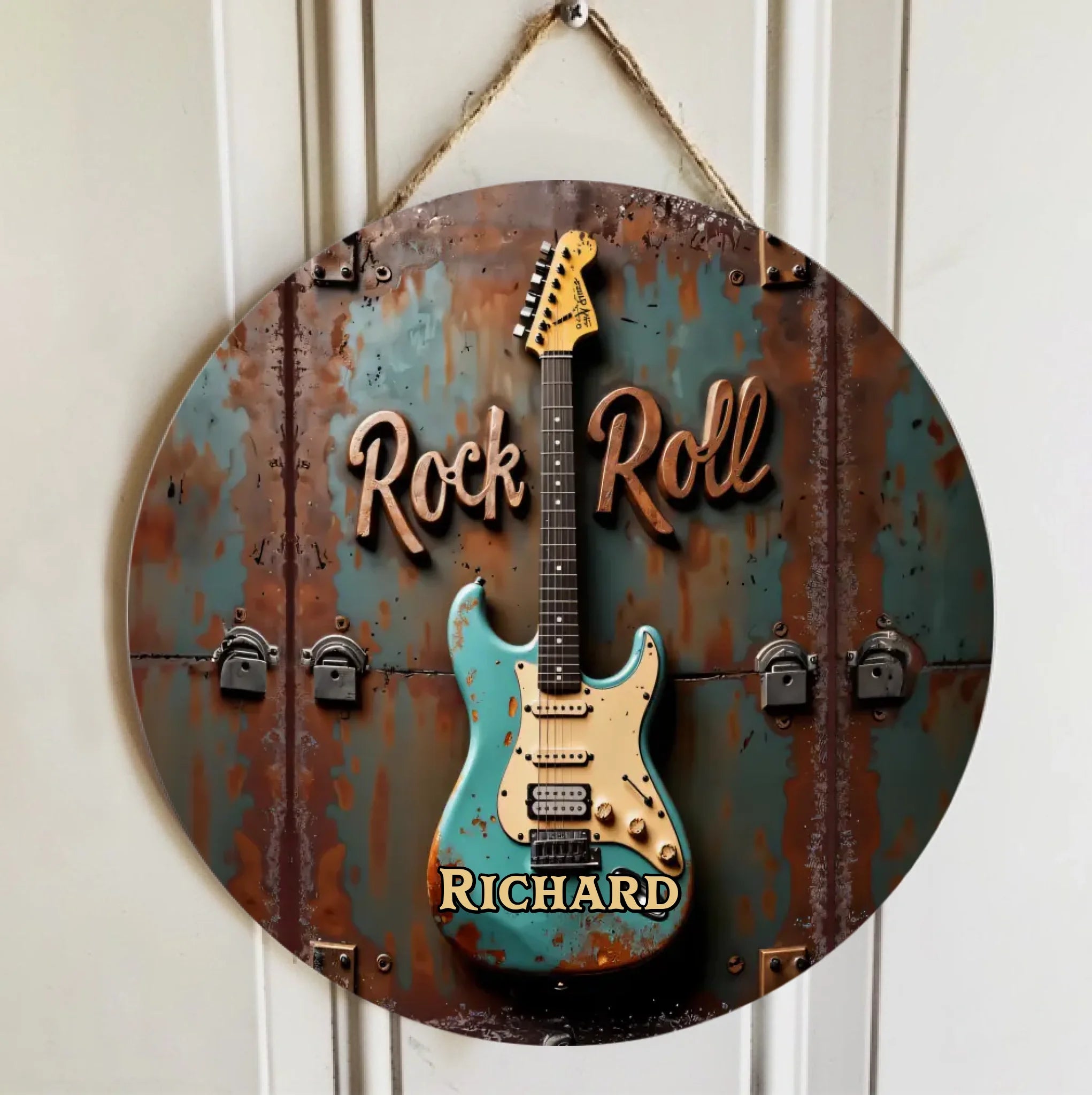 Rock & Roll Vibes – Personalized Guitar Door Sign, Custom Name Design for Music Lovers